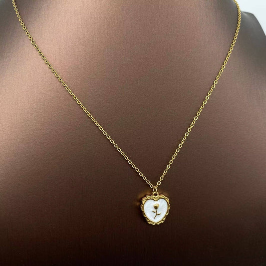 Flower Enamel Heart Charm 18K Gold SS Necklace