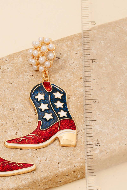 4Th Of July Usa Themed Western Cowboy Boots Dangle Earrings