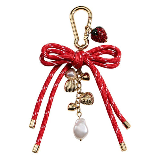 Bow Knot Heart Pearl Strawberry Charm Keychain / Bag Charm