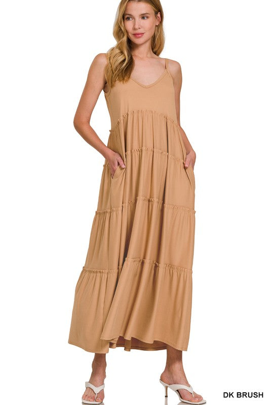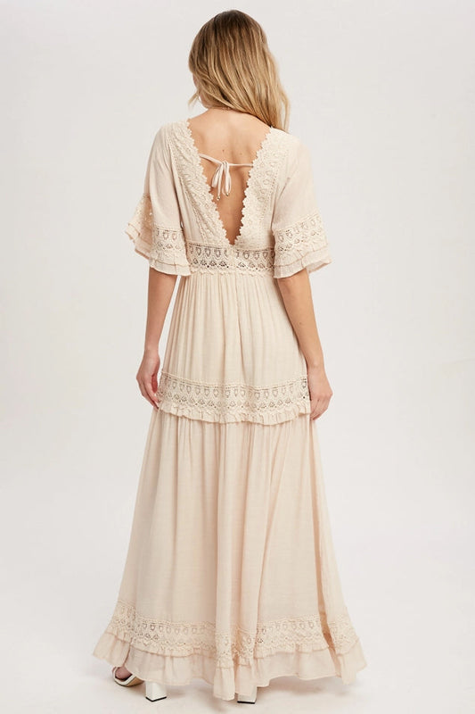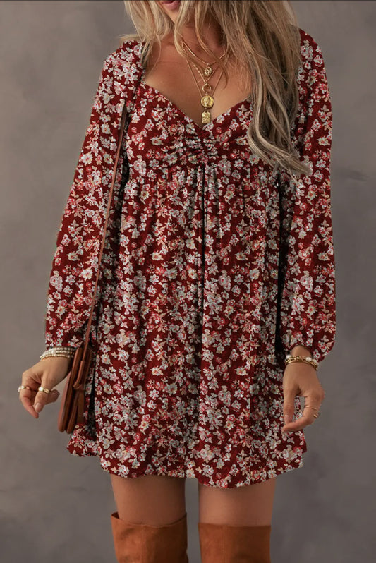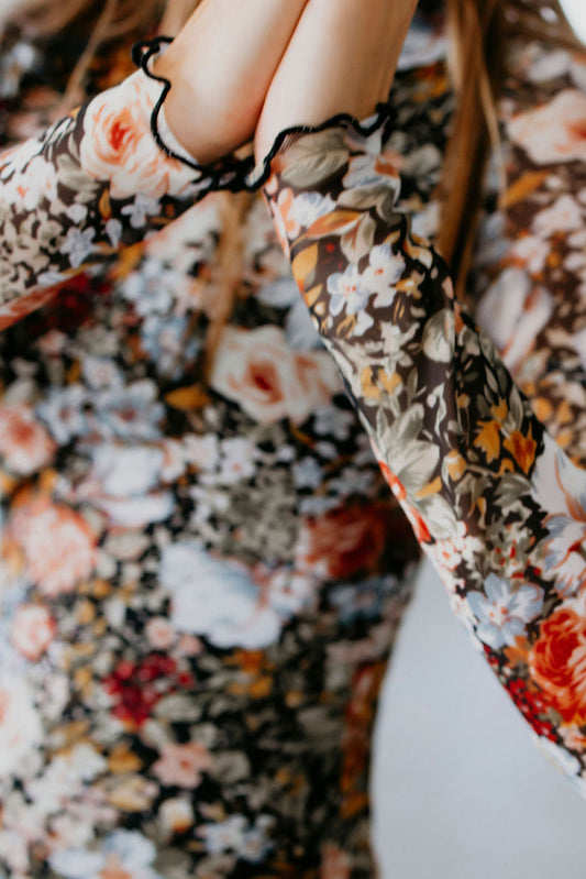 Frilly Shirred Bodice Tie Floral Maxi Dress