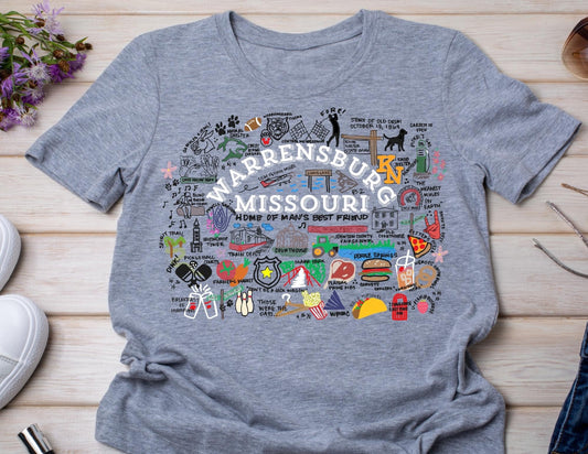 Hand Drawn Warrensburg Missouri Design Graphic Tee