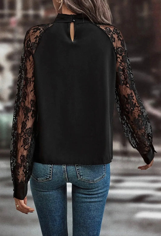 Black Lace Key Hole Blouse