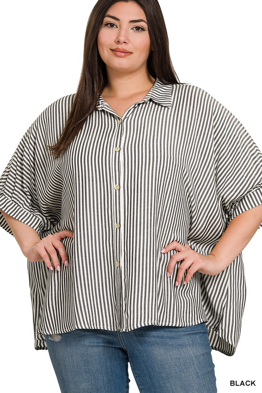 Striped Short Sleeve Button Up Shirt