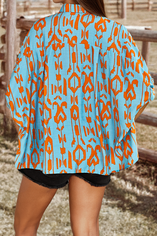 Fashion-W Abstract Print Dolman Western Loose Shirt