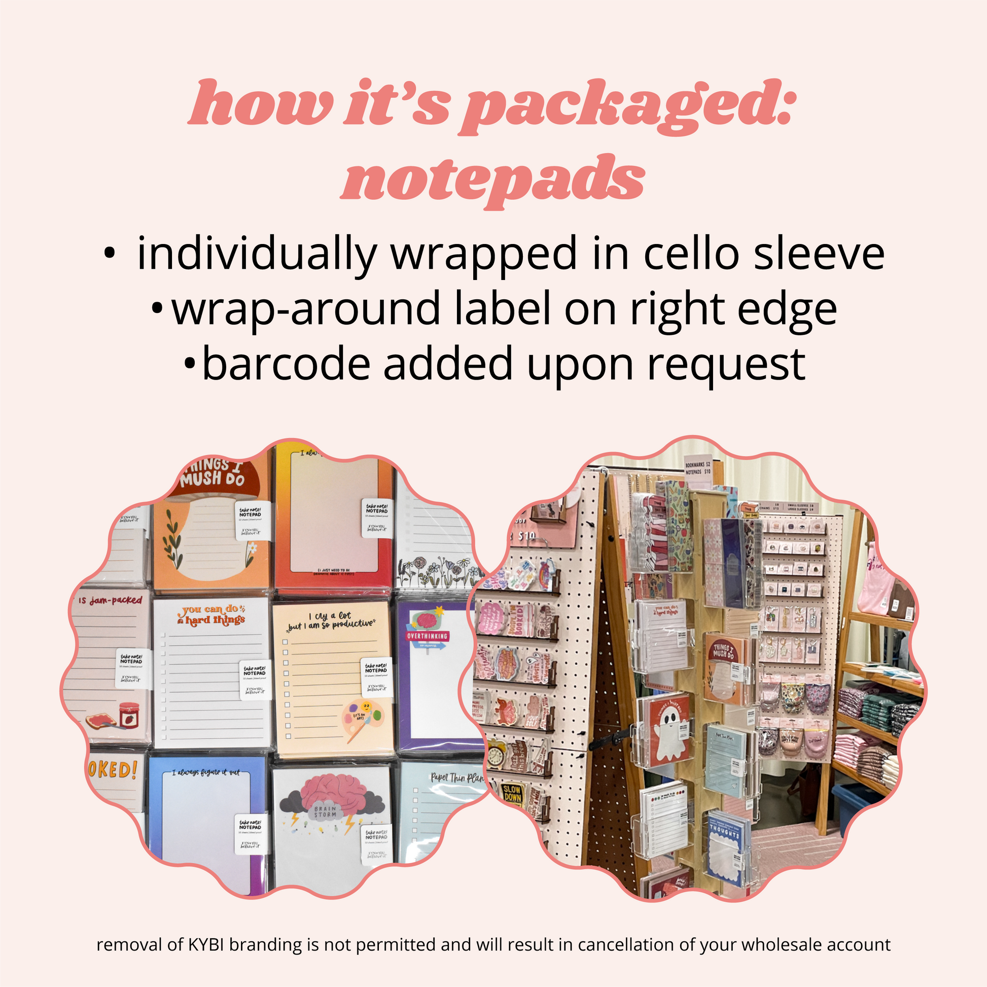if you could see it IRL: 2x7" notepad. 25 full-color pages printed on thick uncoated paper. Little-to-no ghosting or bleeding.