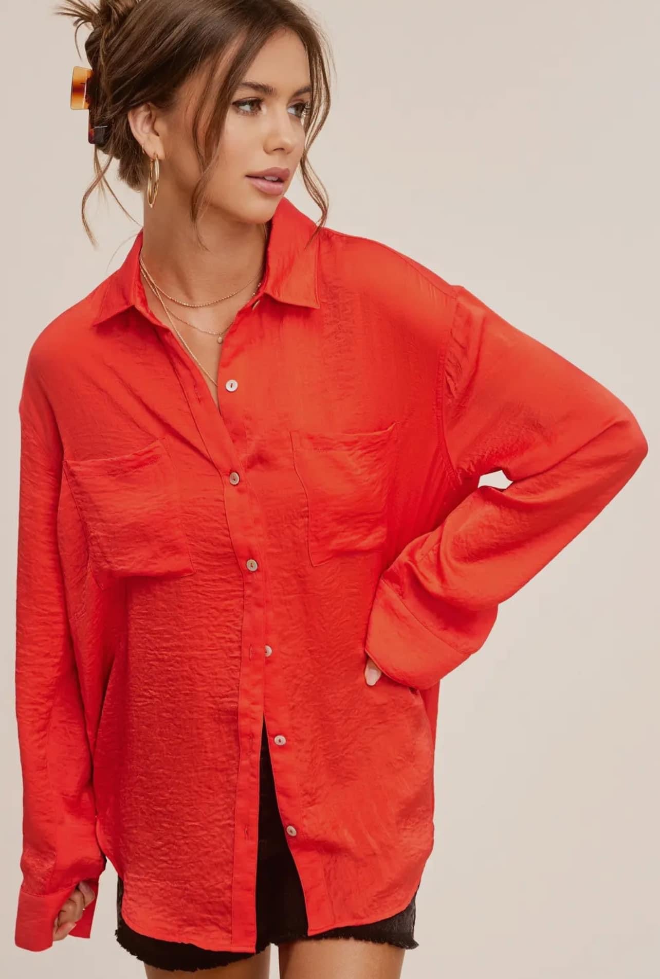 Get ready to rock your work outfit with our gorgeous Button Down Spring Blouse! Made from luxurious polyester, this long tail red blouse boasts an oversized fit that is both comfortable and stylish. Perfect for a busy day at the office or a weekend brunch.