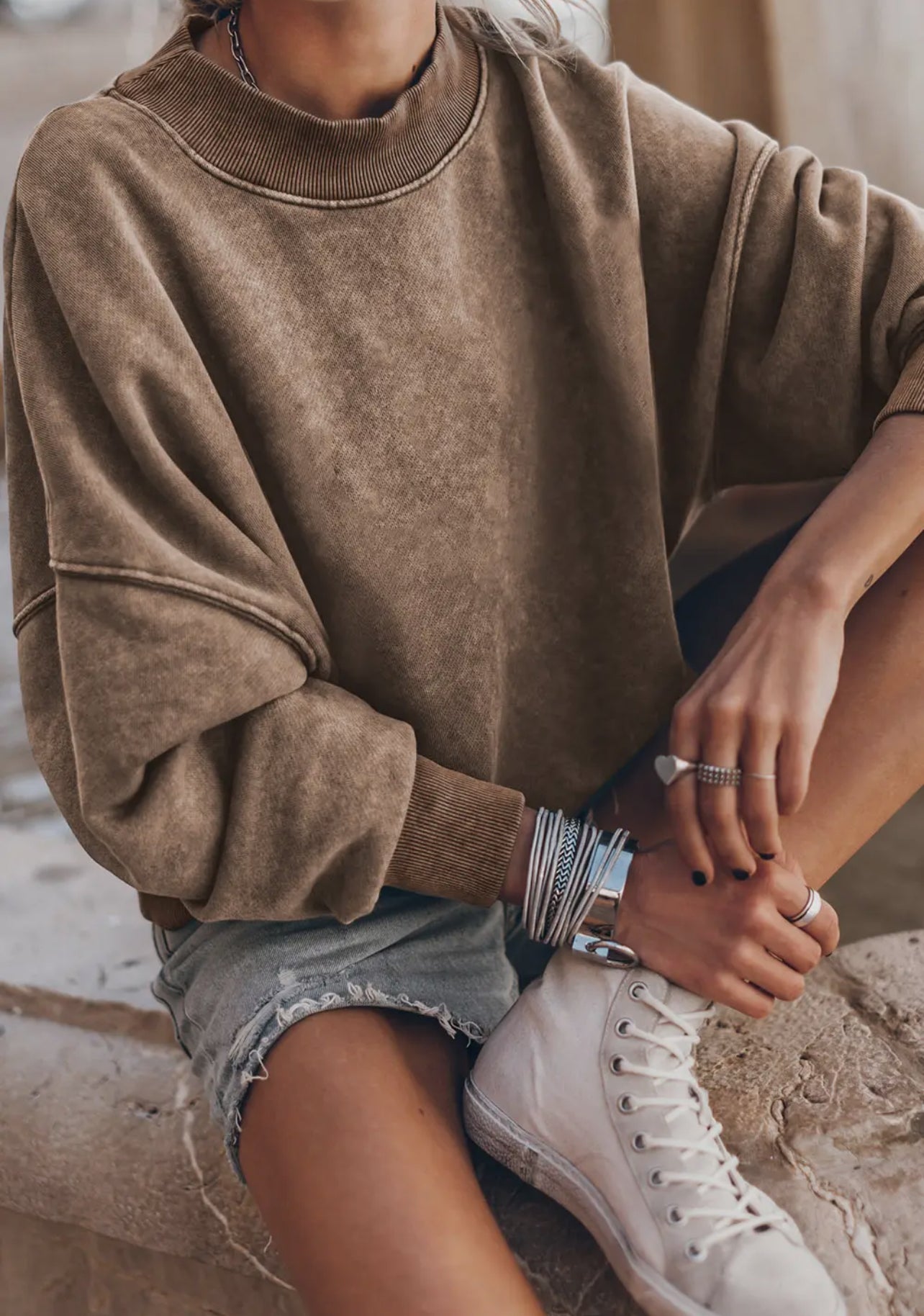 We love these Drop Shoulder sweatshirts! Get comfy and stylish with our 75% polyester and 25% cotton blend available in green or brown. With a vintage-like wash and standard sweatshirt length, this is the perfect addition to your wardrobe. Available in sizes small through XL.