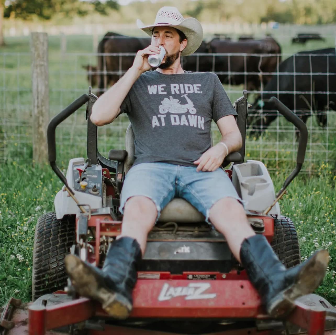 Get ready to mow down some laughs with our "We Ride at Dawn" tee! This playful shirt, complete with lawnmower humor, is perfect for the men in your life. This is printed on a Comfort Colors tee made of 100% cotton.