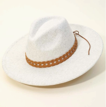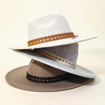 A classic stunning flashy trending must have felt hat features a beautiful braided suede hat band design. Perfect for business casual occasions!