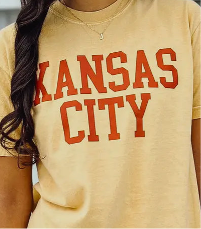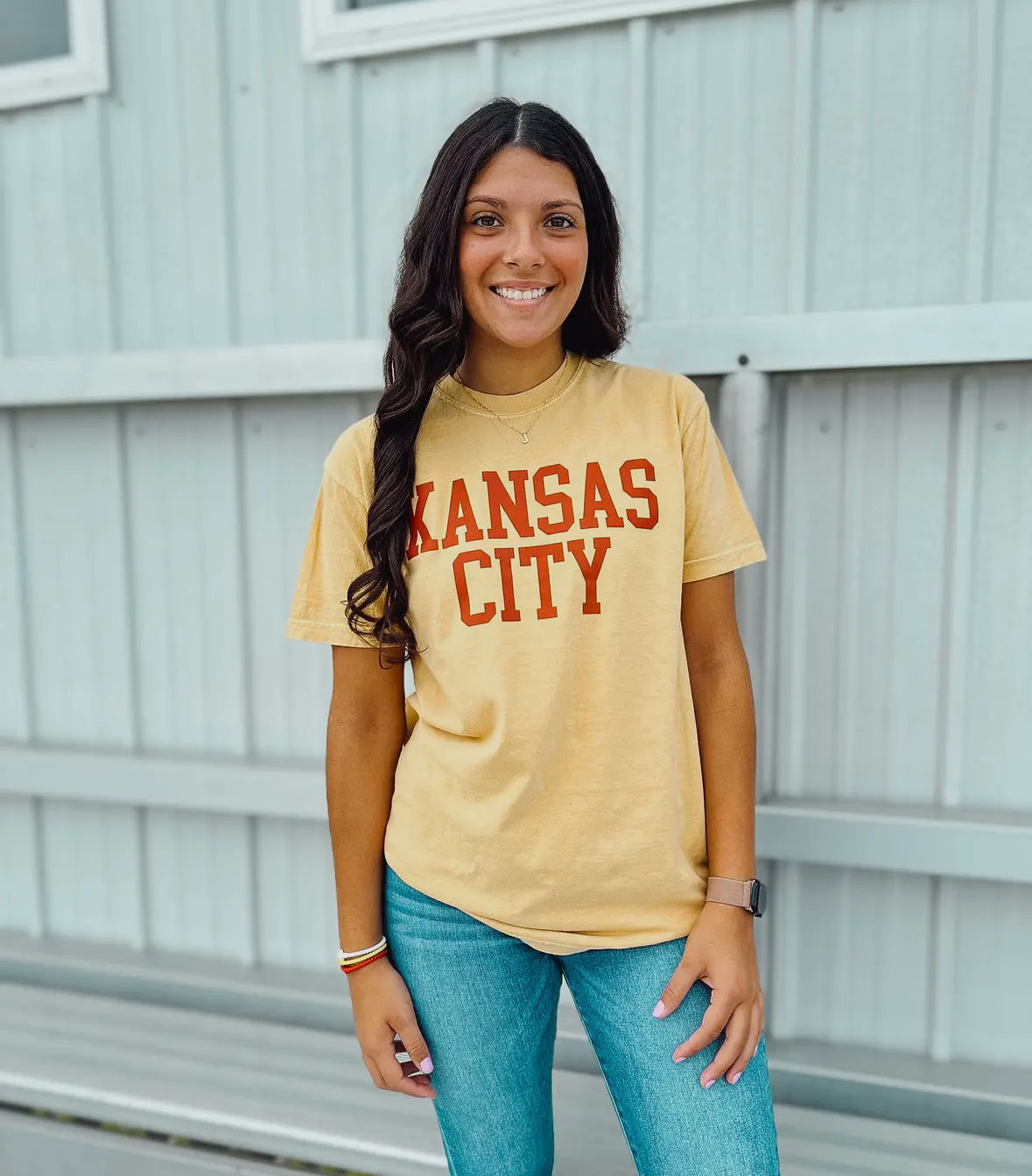 Bring some vintage charm to your game day fit with this playful Kansas City mustard yellow graphic Comfort Color tee. Featuring a classic KC print in a warm, sunny shade, this soft and comfy shirt is perfect for adding a quirky pop of color to your casual looks.