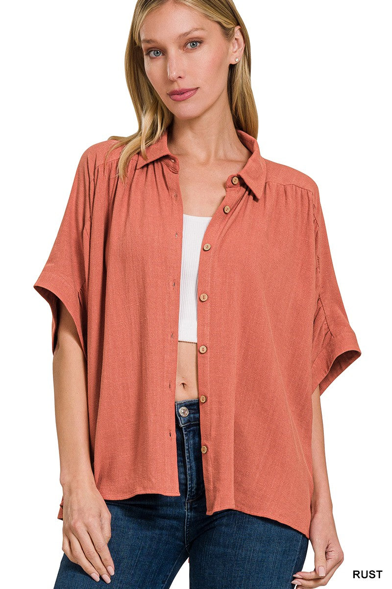 Dress up this lightweight, oversized linen summer top or keep it casual. This top is perfect for any occasion.
