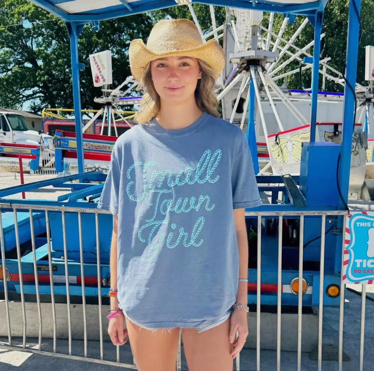 Yeehaw! Saddle up with our Small Town Girl Tee, perfect for any western fair. Embrace your small town roots with this quirky and playful tee.