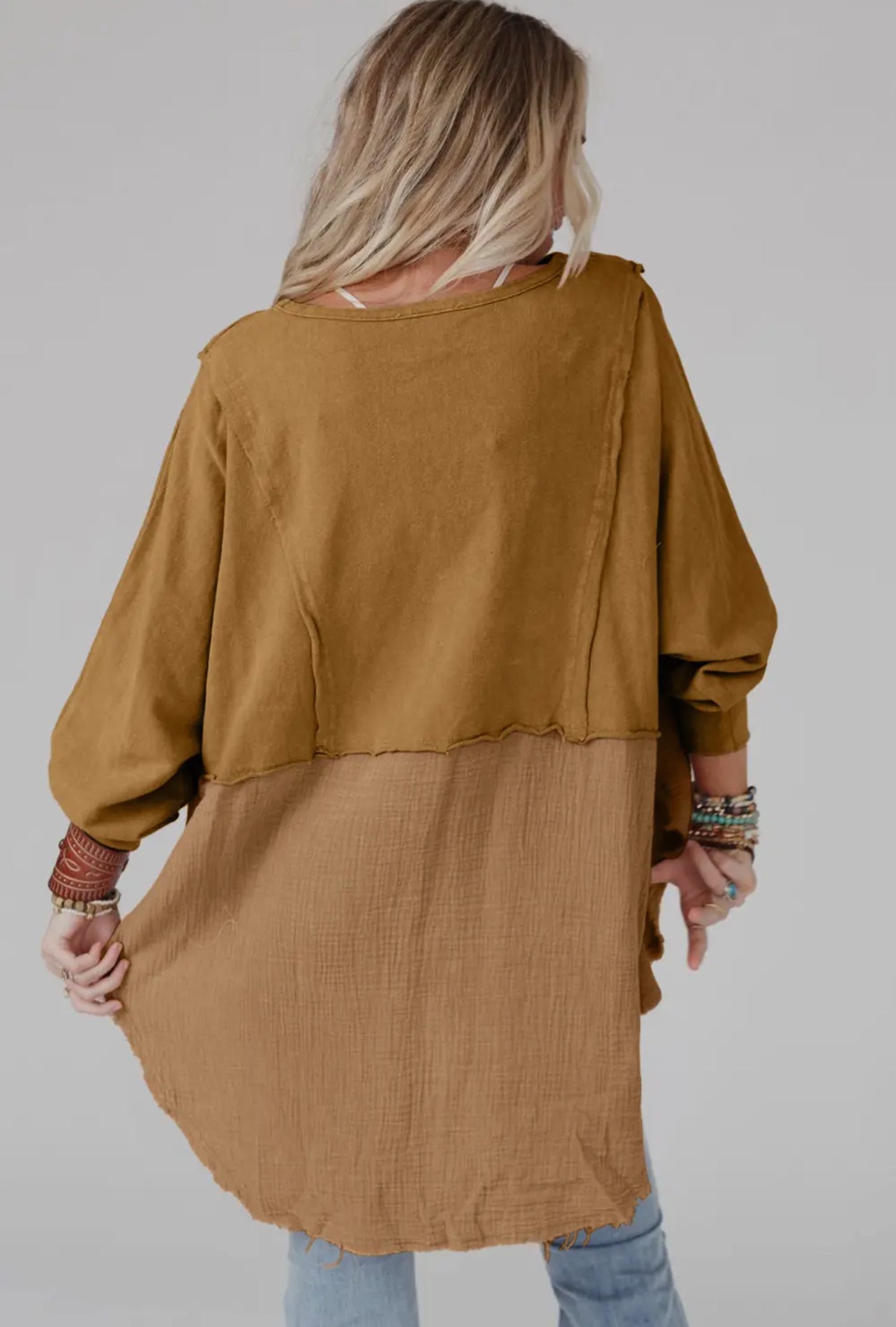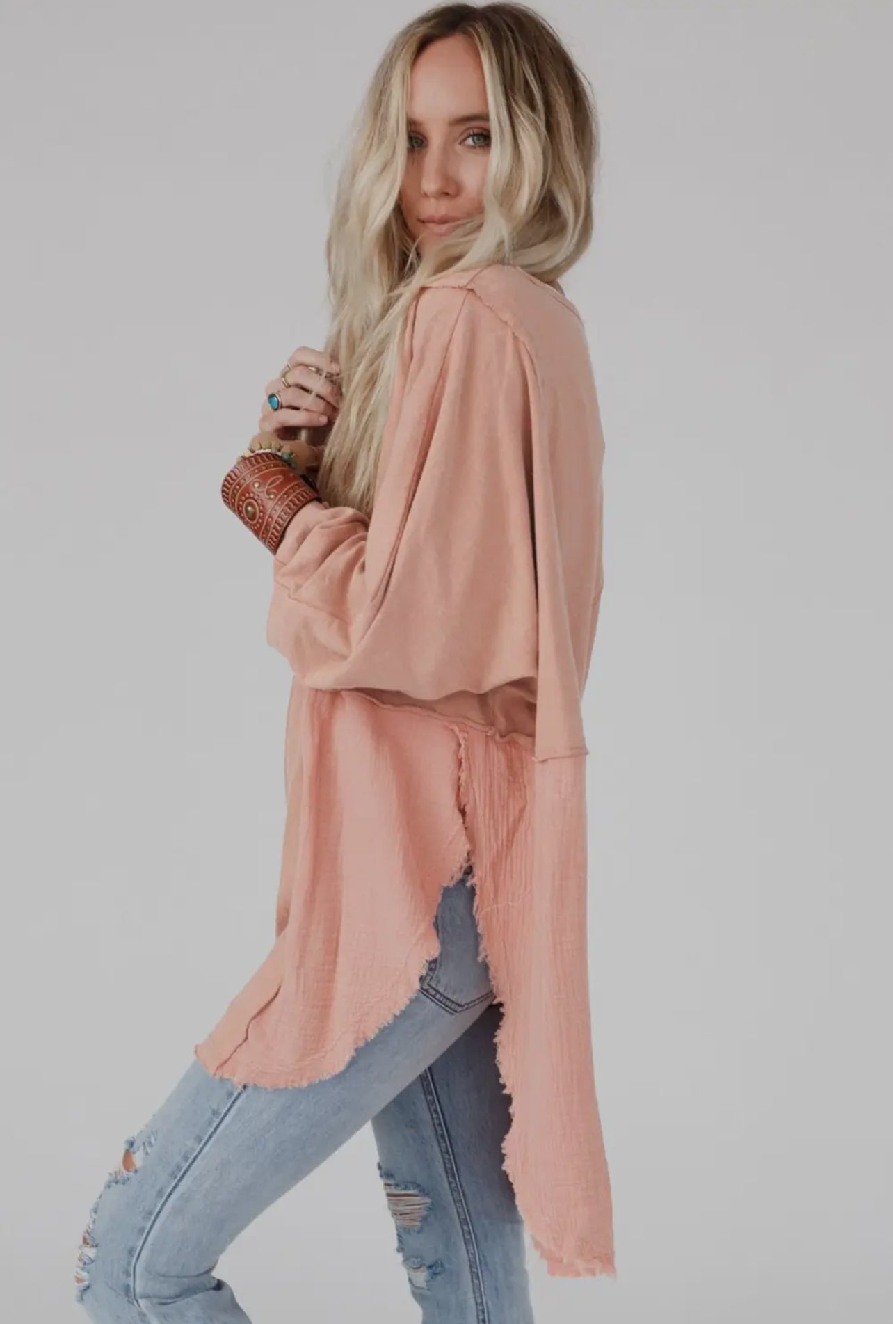 Go bold with our Split Raw Hem Blouse! Made with 80% polyester and 20% cotton, this oversized blouse features a unique raw gauze hem and comes in a variety of vibrant colors. Upgrade your wardrobe and stand out from the crowd with this statement piece.