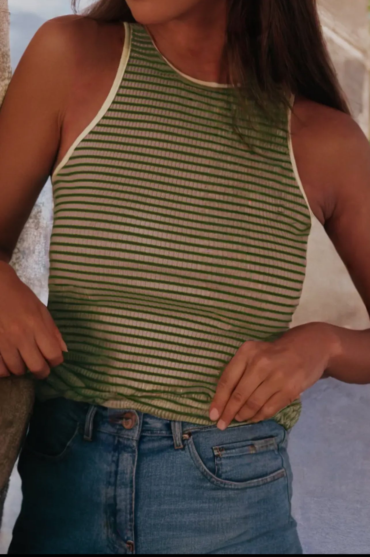 This cute little striped tank top has a slightly cropped fit but otherwise true to size! The keyhole on the back adds a perfect detail.