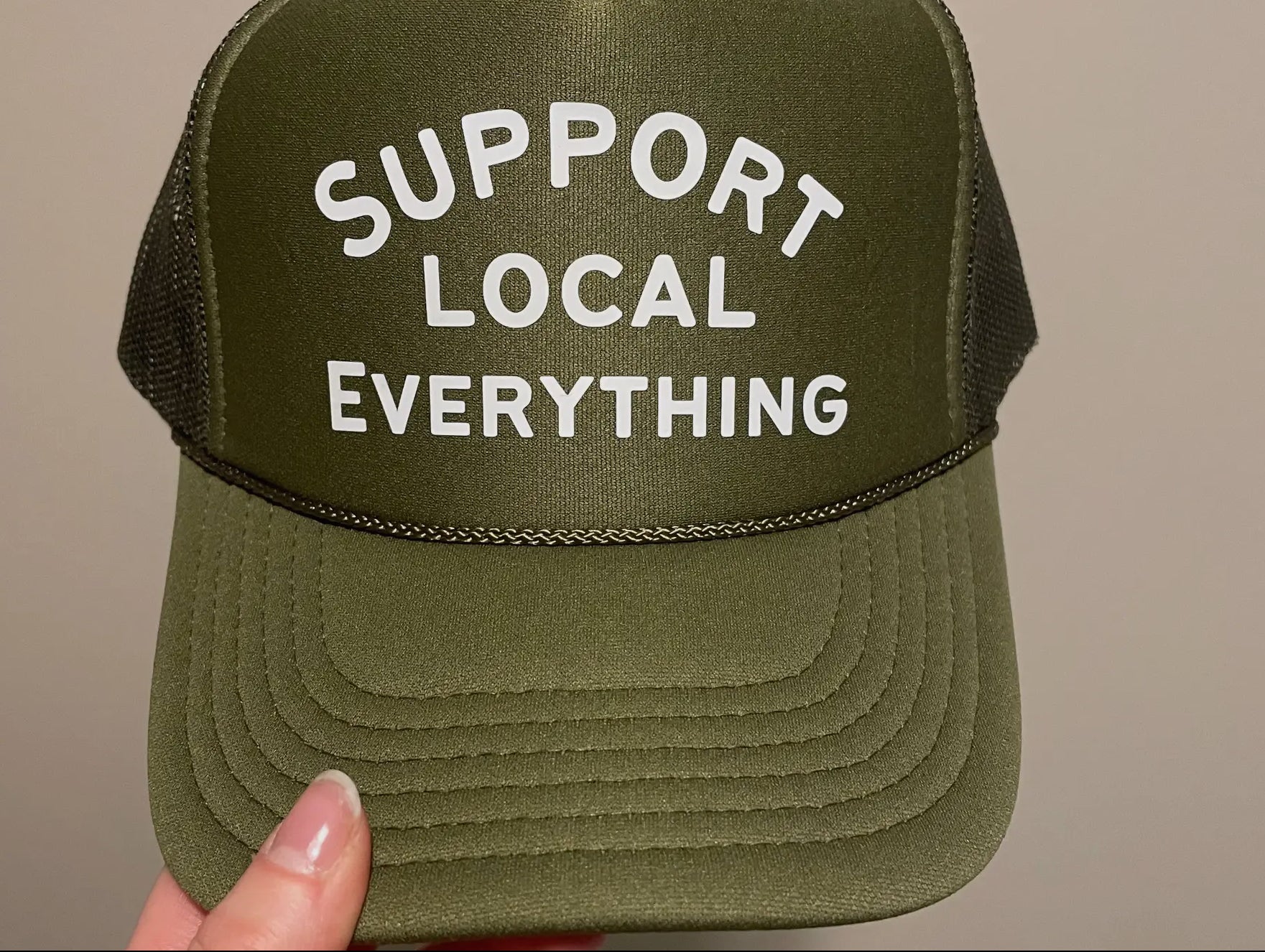 Get ready to show some love for your local community with our Support Local Everything Trucker Hat! This mesh-back snapback hat is perfect for anyone who wants to shop small and support local businesses. Stay trendy while doing good - now that's a win-win!