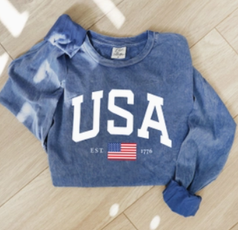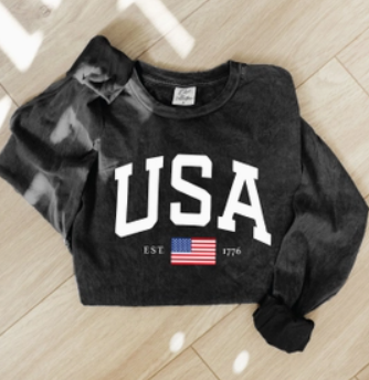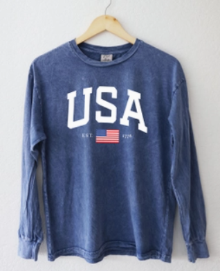 USA Mineral Washed Long Sleeve Graphic