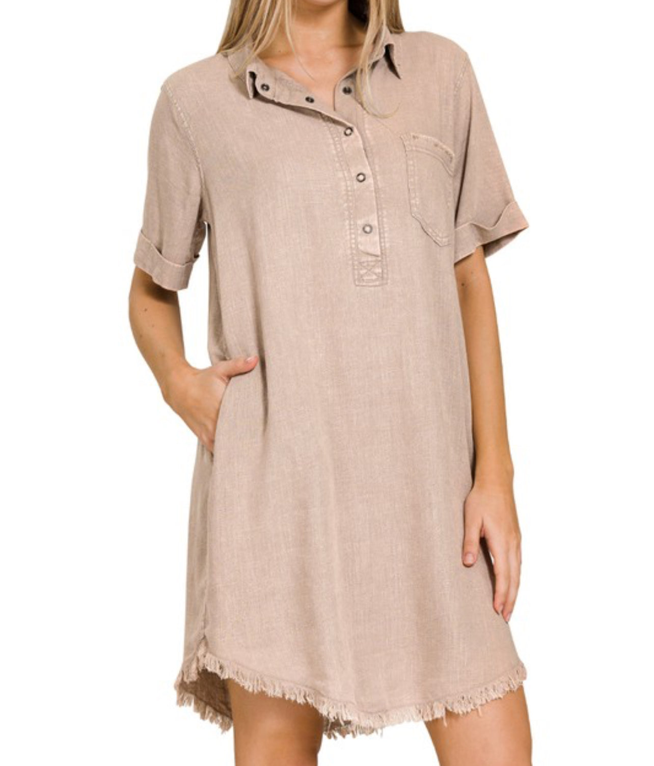 Washed Linen Raw Edge Button Down Dress