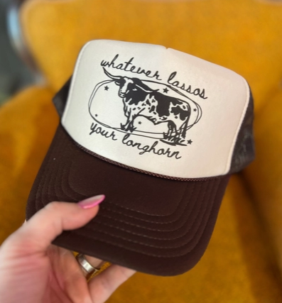 Vintage style 5-panel cap with seamless foam front panel featuring design. Matching inner lining color with sweatband. Plastic adjustable snap closure on back.